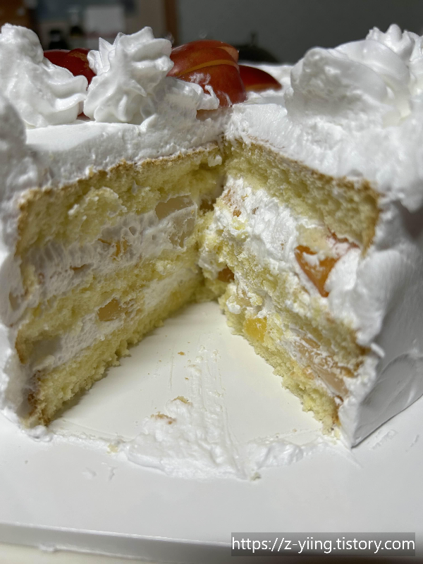 중간중간에 후르츠칵테일 넣고 크림을 듬뿍 발랐더니 맛있었다
