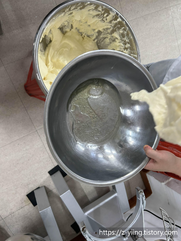 초벌 반죽이 다 섞인 것같으면 전체 반죽에 넣고 혼합한다