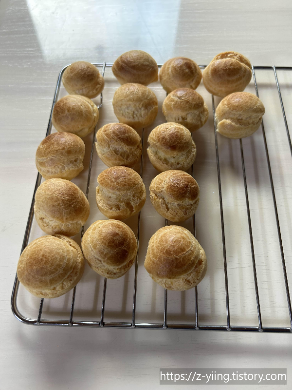 완성된 슈는 식힘망으로 옮겨 식혀주기