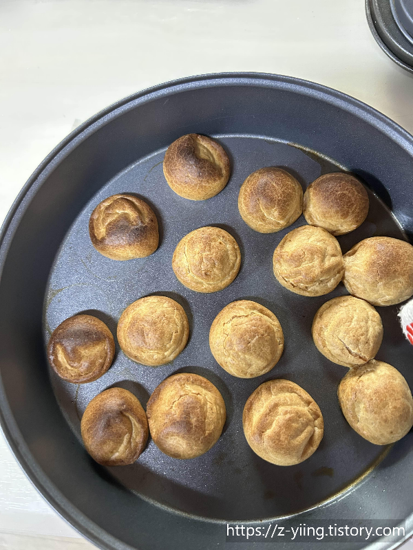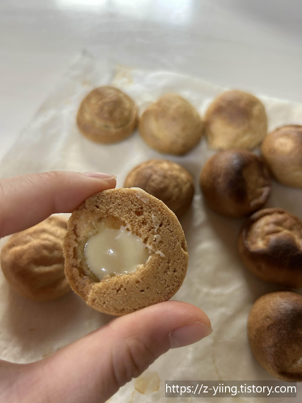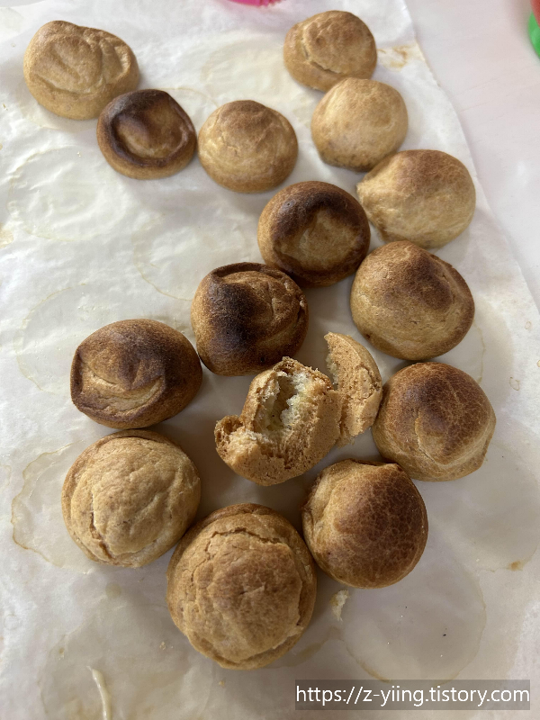 살짝 탔지만 못먹을정도는 아니어서 슈크림 채워서 야무지게 다 먹었다