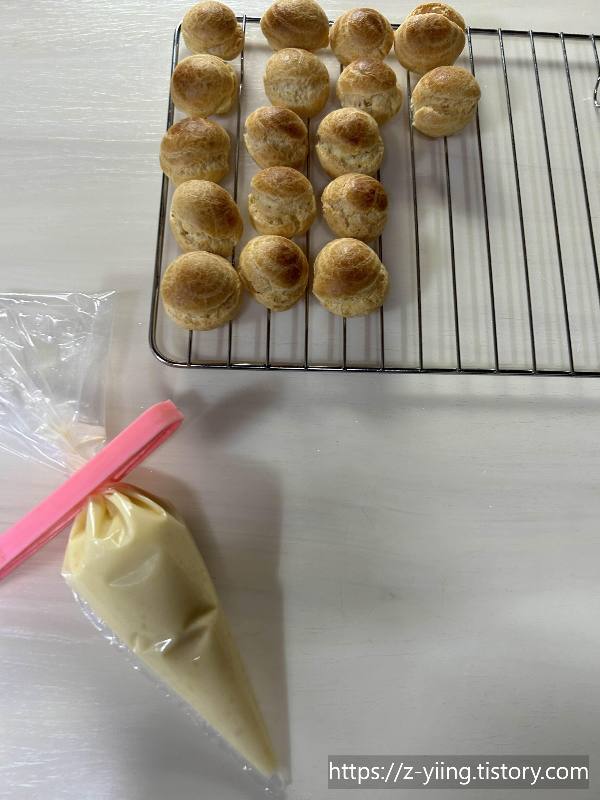 슈크림을 만드는 사이에 슈가 다 구워졌다