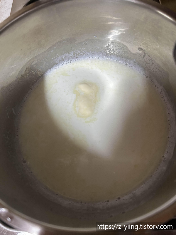 버터가 다 녹았으면 고르게 저어 혼합한 뒤