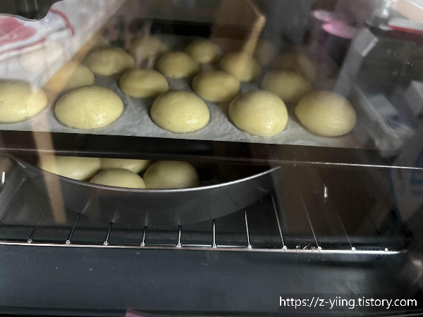 중간칸과 마지막칸 이렇게 한꺼번에 넣었더니 밑에 있는 반죽들은 되게 느리게 부풀기시작했다